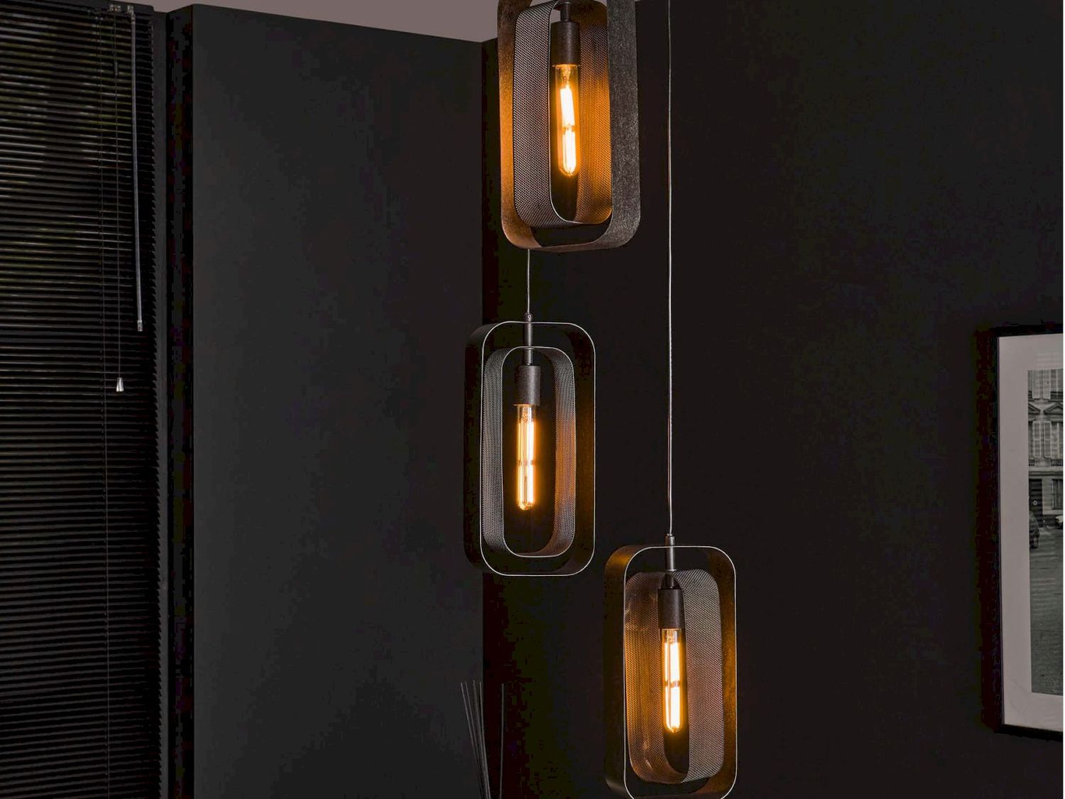 Diese gestufte Hängelampe 'Rotate' ist aus Metall mit einem kunstvollen schwarzen Finish gefertigt. Das Netz kann nach Belieben gedreht werden, wodurch eine schöne Lichtverteilung entsteht.