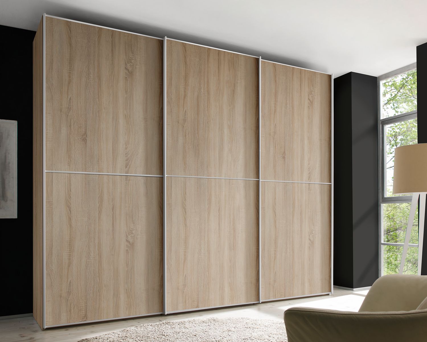 Dieser Schwebetürenschrank präsentiert sich in unterschiedlichen Höhen- und Breitenausführungen und tollen Dekor Ausführungen wie Sand, Vulkan, Weiß und Sonoma Eiche. Das Besondere ist die mittlere Zierleiste, die dem Schrank das gewisse Etwas gibt. Die Griffe und Zierleisten in Alufarbig setzen den Schrank toll in Szene.